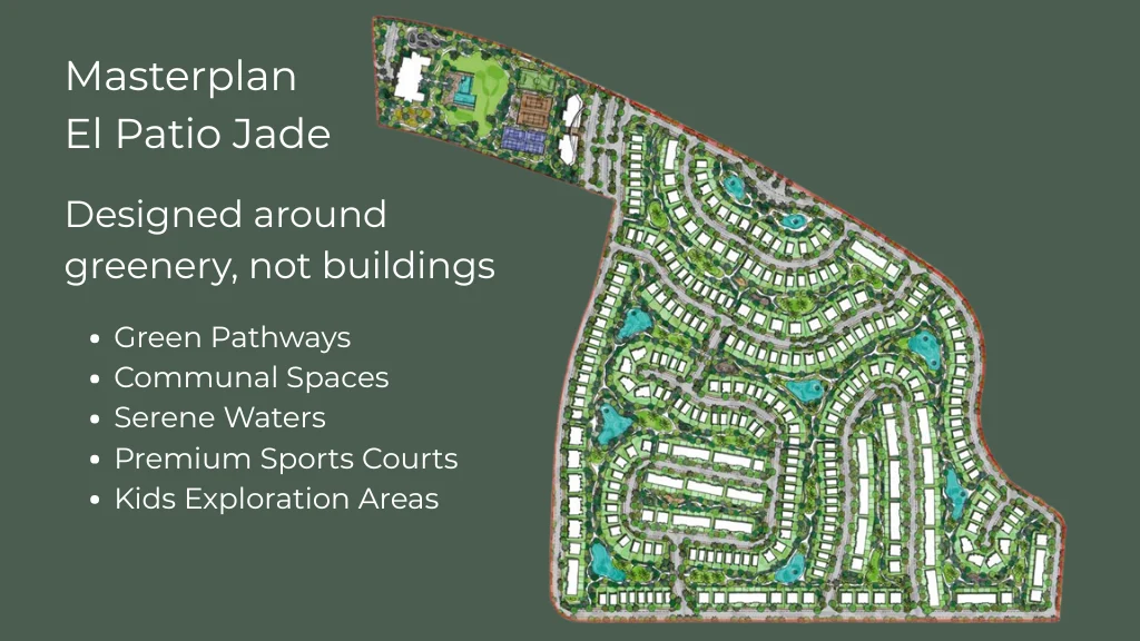 Experience La Vista El Patio Jade Compound, a serene residential landmark in Egypt’s 6th Settlement Extension, strategically positioned near the New Capital vicinity next to La Vista City. Inspired by the Jade stone’s harmony, your entry into this exclusive lifestyle is secured by a smart, unbeatable 12-year payment plan.